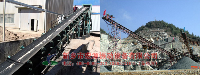 Hongyuan Vibration production of belt conveyor are characterized by their smooth bue, long transport distance, transport, materials and conveyor belt is no relative movement, low noise, simple structure, convenient maintenance, less energy consumption, and the advantages of parts standardization, conveyor belt according to the principle of friction drive and movement, is suitable for conveying bulk density is less than 1.67 ton/cubic meters, easy to take out the powder, granular, small block of low grinding cut materials, or packaged materials, such as coal, gravel, sand, cement, chemical fertilizer, food, etc.
